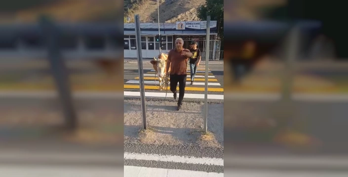 Trafik ışığının kırmızı yanmasını fırsat bilen Aydoğdu, inekleriyle birlikte yaya geçidinden karşıya geçti. Bu sıradışı anlar, çevredeki kişilerin cep telefonu kameralarına yansıdı ve sosyal medyada hızla yayıldı.