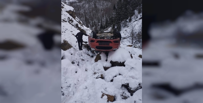 Gümüşhane'nin Kürtün ilçesinde, karlı yolda kontrolden çıkan bir kamyonet, dere yatağına yuvarlandı. Olayda toplamda 5 kişi yaralandı.