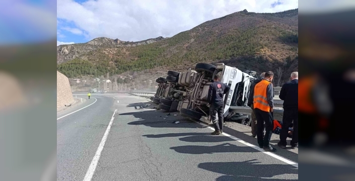 Edinilen bilgilere göre, Gümüşhane istikametine seyreden 61 AID 410 plakalı tırın sürücüsü, henüz belirlenemeyen bir nedenle direksiyon hakimiyetini kaybetti. Bu durum sonucunda tır, virajı alamayarak yan yattı ve yol kenarındaki bariyerlere çarptı.