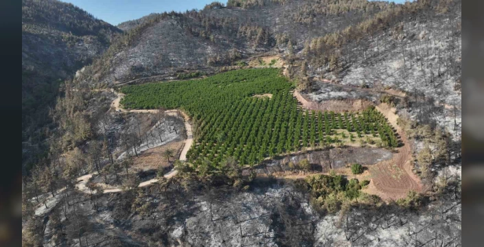 Tahliye edilen köylüler evlerine dönerken, 100 hektarlık alanın küle döndüğü bölgede, Karahıdır Mahallesi'nde bulunan Halil Kiraz'ın bahçesinin yemyeşil kalması dikkatlerden kaçmadı. Çevredeki topraklar gri bir tabaka ile kaplanırken, 2B çerçevesindeki 25 dönümlük arazisi zarar görmedi.