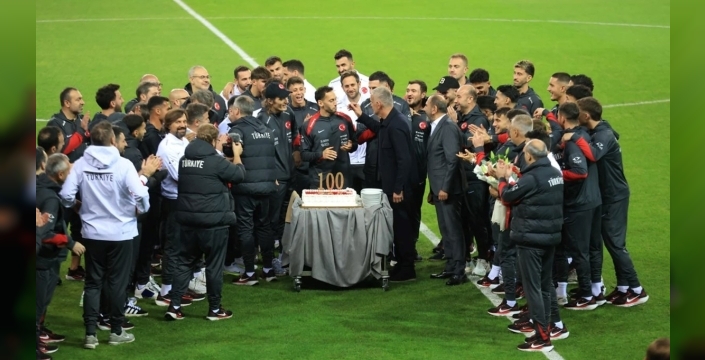 Milli futbolcu Hakan Çalhanoğlu, 100. kez giydiği milli forma şerefine pasta ile kutlandı. Kocaeli'de Gürcistan maçı öncesi gerçekleşen törende, TFF Başkanı ve yerel yöneticiler de yer aldı.