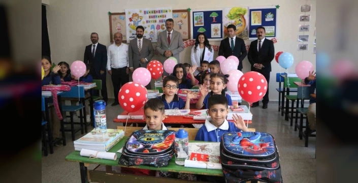 Hakkâri Valisi Ali Çelik, 2025-2026 eğitim öğretim yılının ilk gününde 1. sınıfa başlayan yaklaşık bin 500 öğrenciye okul çantası ve kırtasiye seti hediye etti.