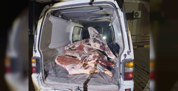 İl Tarım ve Orman Müdürlüğü ile kolluk kuvvetlerinin koordineli çalışmaları kapsamında, Erzin ilçesi E-91 Karayolu üzerindeki Gözene Jandarma Karakolu önünde yapılan rutin denetimlerde H.A. yönetimindeki bir minibüs şüpheli görüldü. Yapılan aramada, minibüsün içerisinden yaklaşık 1 ton ağırlığında, menşei belirsiz kırmızı et çıktı.