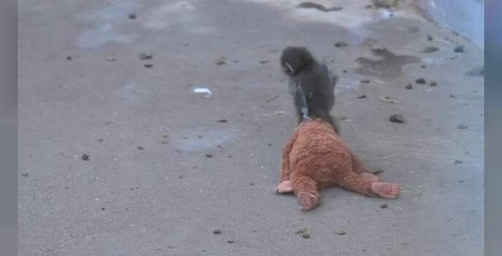 Hayvanat bahçesinde terk edilen yavru maymunun peluş oyuncakla kurduğu bağ
