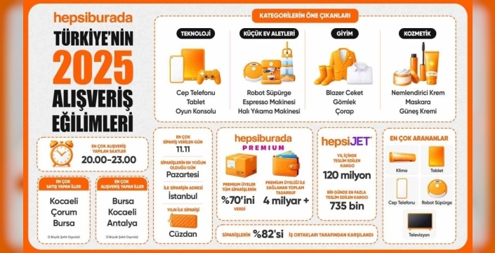 En fazla alışveriş yapan iller üç büyük ilin ardından Bursa, Kocaeli ve Antalya olurken, en yüksek satış hacmine ulaşan şehirler Kocaeli, Çorum ve Bursa oldu. Siparişler en yoğun Kasım ayında gerçekleşti, kullanıcılar ağırlıklı olarak 20.00-23.00 saatleri arasında alışveriş yaptı. Yılın ilk siparişi İstanbul'dan bir kadın cüzdanı için verildi. HepsiJET, 2025'te yaklaşık 120 milyon kargo teslim ederken, en hızlı teslimat 39 dakikada tamamlandı.