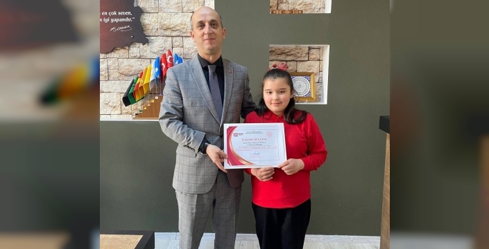 Hisarcık Cumhuriyet İlkokulu'ndan Miray Büşra Gümüşay, 'Su verimliliği ve seferberliği' temalı şiir yarışmasında il birincisi oldu ve ödüllendirildi.
