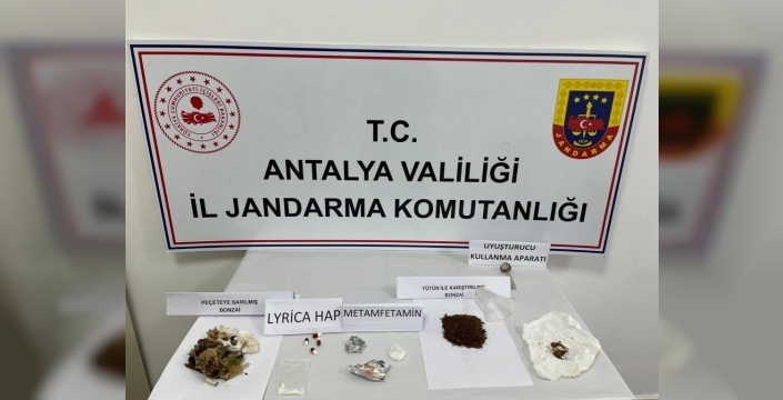 Antalya İbradı'da jandarma ekiplerinin yol kontrolünde durdurulan araçta 4 Lyrica, 10 gram metamfetamin, 102 gram bonzai ve uyuşturucu kullanma aparatı ele geçirildi. Olayla ilgili iki şüpheli hakkında soruşturma başlatıldı.