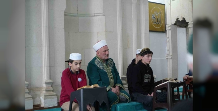 İki nesil aynı kubbede: Hafız oğul mukabele okuyor, imam baba namaz kıldırıyor