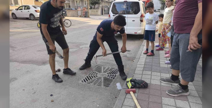 Çocuklar durumu ailelerine anlattı ve mahalle sakinleri hemen İnegöl İtfaiyesi'ni aradı. Olay yerine gelen itfaiye ekipleri, kısa sürede karganın yerini tespit etti ve rögar kapağını açtı. Ekipler, mahsur kalan kargayı dikkatlice çıkararak doğal yaşam alanına bıraktı.