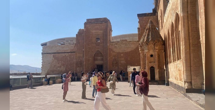 Ağrı'nın Doğubayazıt ilçesindeki İshak Paşa Sarayı, yaz tatili boyunca Türkiye'nin dört bir yanından gelen yoğun ziyaretçi akınına sahne oluyor. UNESCO Dünya Miras Geçici Listesi'ndeki saray, görkemli mimarisiyle büyük ilgi görüyor.