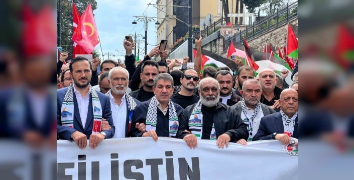 HAK-İŞ Genel Başkanı Mahmut Arslan, yürüyüşte yaptığı konuşmada "Filistin yalnız değildir" mesajını verdi. Arslan, "Yeryüzünün bütün meydanlarında katil Trump ve katil Netanyahu’nun rehinesi olan devletlere rağmen meydanları dolduran dünya halklarına buradan selam olsun, insanlık koalisyonunu kurduk Allah’a şükür. Derisinin rengi, konuştuğu dil, yaşadığı coğrafya, inancı, meşrebi ne olursa olsun insanlık koalisyonu bugün yönünü Gazze’ye, Filistin’e döndü. Onlara selam olsun, onlara selam olsun. Başta Ankara başkent olmak üzere ülkemin bütün meydanlarında, bütün alanlarında Gazze için Filistin için kalpleri, gönülleri çarpan bütün kardeşlerimize İstanbul’dan selam olsun, onlara kolay gelsin diyoruz. Aziz İstanbullular, aziz kardeşlerim tam 729 gün oldu Gazze’de yaşanan katliamlar, soykırım, akılalmaz işkenceler adeta atom bombasının katbekatı bombalara muhatap olmuş Gazzeli kardeşlerimize, Filistinli dostlarımıza buradan selam olsun, bu meydandan selam olsun kendilerine. Değerli dostlarım İstanbullular, 729 gündür katillerin bombalarına, katillerin silahlarına, her türlü yıkım araçlarına karşı ayakta kalan direnişi devam ettiren direnişçi Hamas’a, Kassam Tugayları’na selam olsun buradan. Bütün şehitlerimize, 729 gündür, rakamları gerçek olmayan, bize gelen rakamlara göre 65 bini geçen kadınlar, çocuklar, yaşlılar, masum insanları kaybettik. Onlara Allah’tan rahmet diliyoruz. Onları şefaatçi olarak bekliyoruz" ifadelerini kullandı. Arslan, Filistin davasının artık bir insanlık davası olduğunu vurgulayarak, "İnşallah aziz kardeşlerim Filistin davası artık Filistinlilerin davası olmaktan çıkmıştır. Artık Müslüman ülkelerin davası olmaktan da çıkmıştır. Filistin davası bir insanlık davasıdır. Gazze bir insanlık meselesidir. Bundan sonra onun için insanlığın koalisyonu olan yeryüzünün her köşesinden Filistin diye haykıran bütün mazlumlara buradan bir kez daha teşekkür ediyoruz. Onlarla dayanışmamızı daha da güçlendireceğiz inşallah ama bu toprakların ayrı bir sorumluluğu var bu ülkenin ayrı bir sorumluluğu var biz duymasak da görmesek de uzak kalsak da onlar bizi görüyor, onlar bizi biliyor ve bu topraklarda gözünü açmış bekliyor" dedi. Eminönü Meydanı'nda son bulan yürüyüşte, katılımcılar İsrail'in işgal politikalarına sert tepki göstererek uluslararası toplumu Gazze'deki saldırılara karşı acil harekete geçmeye çağırdılar.
