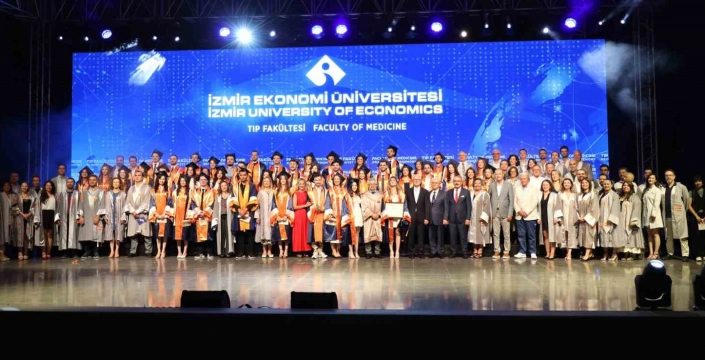 İzmir Ekonomi Üniversitesi (İEÜ) Tıp Fakültesi'nden 44 genç hekim, 6 yıllık eğitim sürecinin ardından diplomalarına kavuştu. Mezuniyet töreni, üniversitenin kampüsündeki amfitiyatroda gerçekleştirildi. Genç hekimler, keplerini havaya atarak mezuniyet coşkusunu doyasıya yaşadılar ve ‘Hekimlik Andı’nı birlikte okudular.