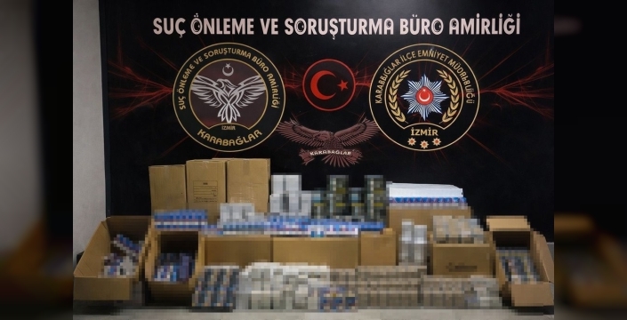 İzmir'in Karabağlar ilçesinde polis ekipleri tarafından düzenlenen bir operasyonda, 500 bin adet doldurulmuş makaron ile çok sayıda kaçak ürün ele geçirildi. Operasyon sırasında iki şüpheli gözaltına alındı.