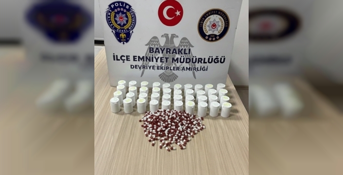 İzmir'in Bayraklı ilçesinde, polis ekipleri tarafından durdurulan bir araçta gerçekleştirilen aramada toplamda 2 bin 102 adet uyuşturucu hap ele geçirildi.