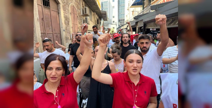 İşçiler adına açıklama yapan Belediye-İş 2 No’lu Şube Başkanı Savaş Atalay, 'Şu anda işçi arkadaşlarımız direniyor, mücadelesine ve ekmeğine sahip çıkıyor. Burada haksız bir işçi çıkarımı var. Biz toplu sözleşmemizi bitireli 17 ay oldu. Cemil Tugay, ’Toplu sözleşmeden geri atacaksınız, yoksa ben bin kişiyi işten çıkartacağım’ diyor. Yani sendikaların diz çökmesini istiyor, ’Benim dediğim olacak’ diyor. Mevcut olan bir toplu sözleşme var ve buna mahkemeler bile karışamıyor. Mahkemeye verip durdurma kararı istediler, buna ret geldi. Yani mahkemenin bile ret kararı varken, Cemil Başkan baskıyla, tehditle bizleri eline almaya çalışıyor. Şu anda eylül ayında alacağımız bir enflasyon farkı var. Ayrıca işe devam primi ve teşvik primi var. Bu maddeler, idari maddelerdir. Bu maddeler 2005 yılından beri olan maddelerdir. 6 ay sonra toplu sözleşmemiz var; otururuz müzakere ederiz. Ama resmen dayatma ve tehditle bunu geri almaya çalışıyor' dedi.