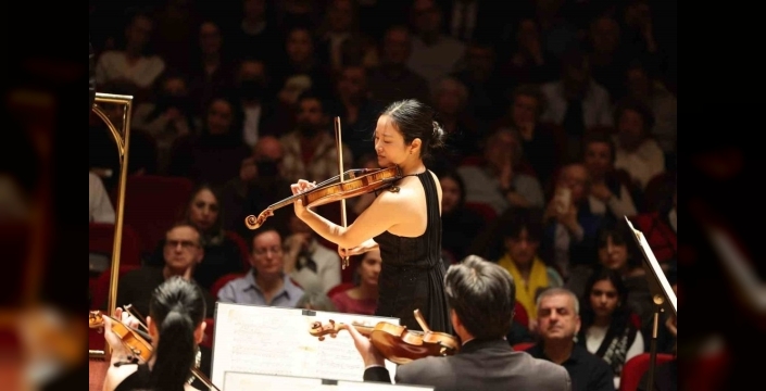 İzmir Büyükşehir Belediyesi Ahmed Adnan Saygun Sanat Merkezi'nde (AASSM) düzenlenen konserde, İzmir Devlet Senfoni Orkestrası (İZDSO) şef Christoph-Mathias Mueller ve keman virtüözü Bomsori Kim'i bir araya getirdi. İzmirliler, bu iki büyük yeteneğin performansını izleme fırsatı buldu.