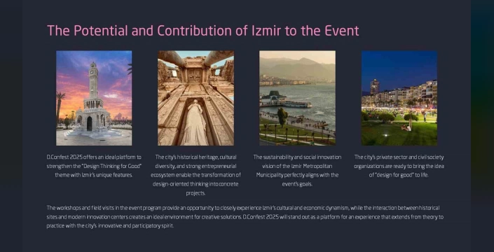 Konferansın İzmir'de düzenlenmesi, kentin 'yaratıcı şehir' vizyonuna güç katacak ve gençler ile profesyoneller için geleceğe yönelik bir platform oluşturacak. Dr. Öğretim Görevlisi Can Güvenir, konferansın ana temasının 'İyilik için Tasarım Odaklı Düşünme' olduğunu ve inovasyonun konuşulmasının yanı sıra, daha iyi bir gelecek için ortak akıl üretilmesini hedeflediğini belirtti. İzmir'in bu süreçte ev sahipliği yapmasının, kenti iyiliğin ve dönüşümün küresel buluşma noktası haline getirdiğini vurguladı.