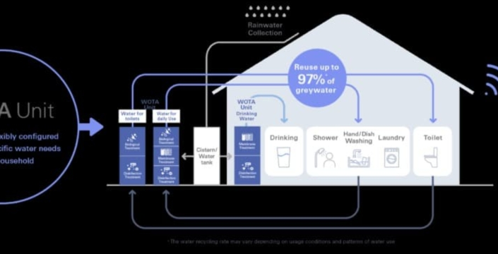WOTA Corp. tarafından geliştirilen bu cihaz, evlerde kullanılan suyu arıtarak tekrar kullanım için hazır hale getiriyor. Bu sistem sayesinde klasik su borularına olan ihtiyaç büyük ölçüde ortadan kalkacak. 2026 yılı itibarıyla Akita ve Ishikawa gibi bölgelerde test edilmeye başlanacak olan bu sistem, duş, lavabo ve çamaşır makinesinden çıkan 'gri suyu' toplayarak filtreliyor ve güvenli bir şekilde yeniden kullanıma sunuyor. Cihazın, evlerde kullanılan suyun yaklaşık yüzde 97'sini geri dönüştürebilme kapasitesine sahip olduğu bildiriliyor.