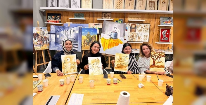 Görsel Sanatlar Atölyesi'nde düzenlenen etkinlikte, öğretmenler müziğin melodileri eşliğinde kahveyle boyama tekniğini kullanarak özgün görsel çalışmalar ortaya koydu. Müzik Akademisi Koordinatörü Evrim Tan, kahvenin boyama sanatındaki kullanımı, teknikleri, tarihsel süreci ve bu teknikle oluşturulmuş sanat eserleri hakkında öğretmenlere değerli bilgiler aktardı.