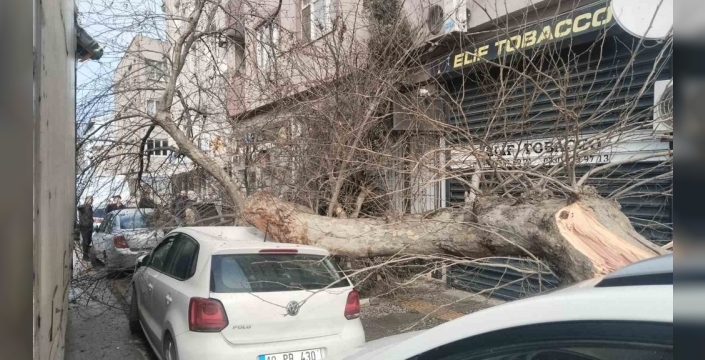 Kamyon dehşeti! Çınar devrildi, park halindeki araçları ezdi geçti