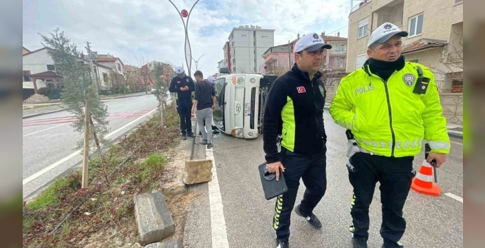 Kamyonet refüje çarparak devrildi, 2 kişi yaralandı