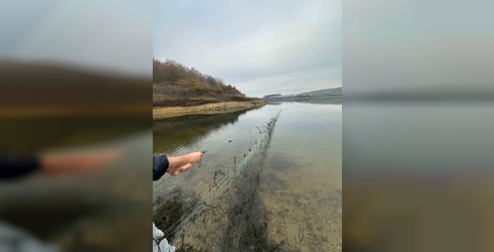 Kocaeli'nin Kandıra ilçesinde, su ürünleri popülasyonunu korumak amacıyla kaçak avcılığa karşı drone ile denetim yapıldı. Ekipler, Namazgâh Barajı'nda gerçekleştirdikleri havadan taramada, kıyı şeridine bırakılan metrelerce uzunluktaki ağı tespit etti ve sudan çıkardı.