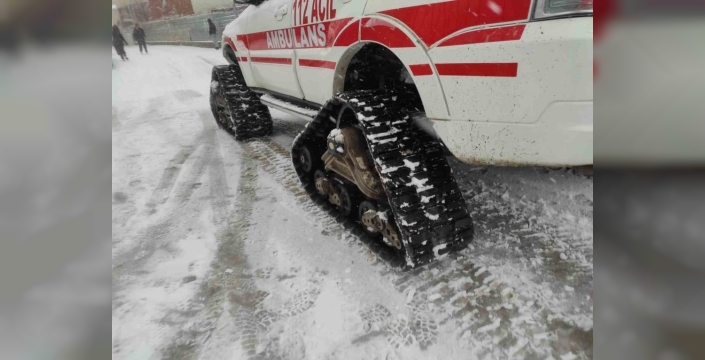 Kar ve buzlu yollara inat: Paletli ambulansla hayat kurtarıldı