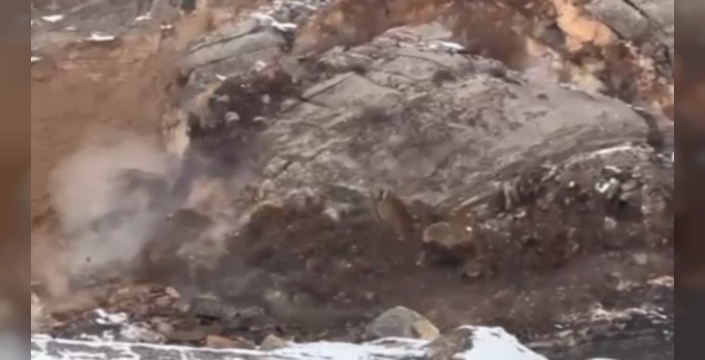Hakkari-Çukurca kara yolunda kaya düşmesi tehlikesi yaşandı. Yoğun kar ve yağmur sonrası gevşeyen toprak nedeniyle yerinden oynayan dev kaya parçası, o anları kaydeden cep telefonu kamerasına yansıdı. Sürücüler uyarıldı.