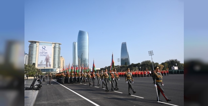 Azerbaycan, Ermenistan'ın işgaline son veren 2. Karabağ Savaşı'nın 5. yıl dönümünü kutlamak üzere başkent Bakü'de büyük bir askeri geçit töreni düzenledi.