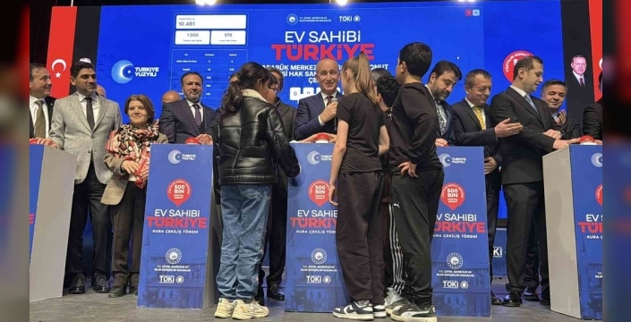 Karabük'te, Yüzyılın Konut Projesi kapsamında inşa edilecek olan bin 600 konutun hak sahipleri, büyük bir coşkuyla gerçekleştirilen kura çekimiyle belirlendi. 100. Yıl Kültür Merkezi'nde düzenlenen tören, saygı duruşu ve İstiklal Marşı'nın okunmasıyla başladı. Ardından, Cumhurbaşkanı Recep Tayyip Erdoğan'ın mesajı okundu.