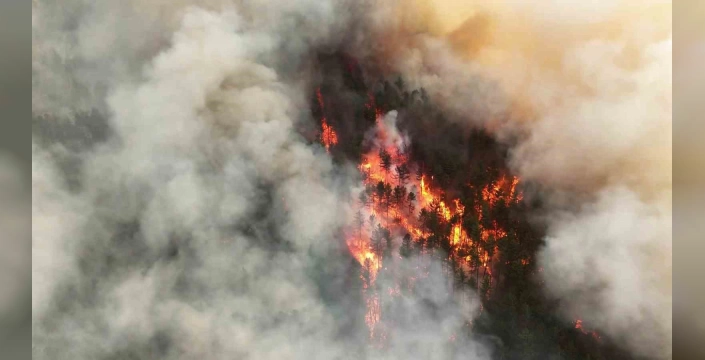 Karabük'te yaklaşık 5 saattir devam eden orman yangını, dron ile havadan görüntülendi. Yangın, Eflani ilçesine bağlı Saraycık köyünde başlamış ve rüzgarın etkisiyle hızla yayılarak Safranbolu ilçesine bağlı Harmancık köyüne sıçramıştı.