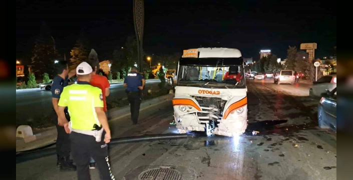 Karaman'da meydana gelen bir trafik kazasında, kontrolden çıkan yolcu minibüsü orta refüjü aşarak karşı şeride geçti. 70 M 0212 plakalı minibüs, İbrahim Öktem Caddesi üzerinde gece saat 23.50 sıralarında, sürücüsünün direksiyon hakimiyetini kaybetmesi sonucu önce orta refüjdeki ağaçlara ve bir aydınlatma direğine çarptı.