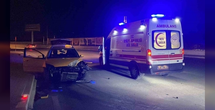 Karaman'da meydana gelen bir trafik kazasında, aşırı hız sebebiyle kontrolünü kaybeden bir ticari taksi, yol kenarındaki aydınlatma direğine çarparak durdu.