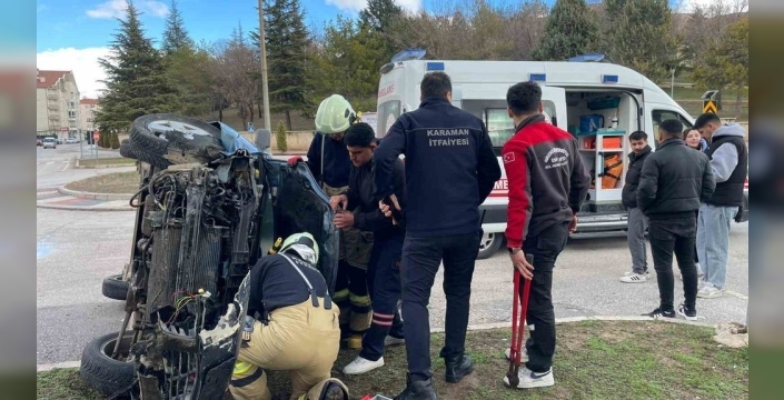 Karaman'da meydana gelen trafik kazasında, hafif ticari bir araçla çarpışan otomobil yan yatarken, araçlarda bulunan 2 kişi yaralandı. Yaralılar hastaneye kaldırıldı.