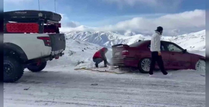 Karda mahsur kalan sürücüye off-road ekibi yetişti