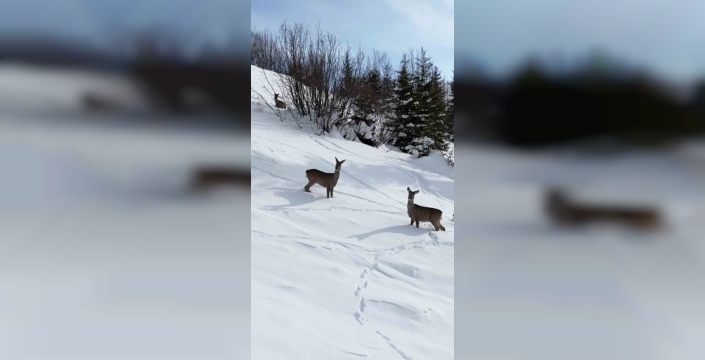 Karın örtüsü altında karacaların hayatta kalma mücadelesi Giresun'da görüntülendi