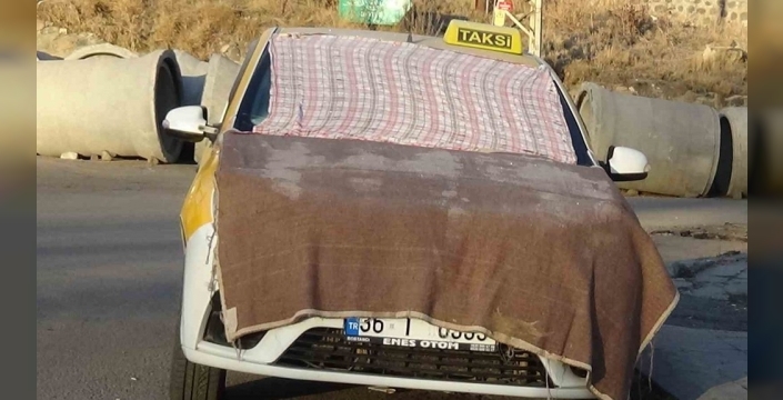 Kars'ta hava sıcaklığının sıfırın altında 13 dereceye düşmesiyle kent adeta buz kesti. Dondurucu soğuklar, günlük hayatı olumsuz etkilerken, vatandaşlar araçlarını korumak için çareyi battaniye ve kilimlerde buldu.