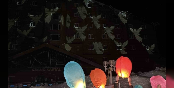 Bolu'daki Grand Kartal Otel'de geçen yıl çıkan ve 34'ü çocuk 78 kişinin hayatını kaybettiği yangın faciasının birinci yıldönümünde, acılı aileler otel önünde buluştu. Facianın yaşandığı saat 03.17'de gökyüzüne dilek fenerleri bırakan aileler, kaybettikleri yakınlarını gözyaşlarıyla andı.