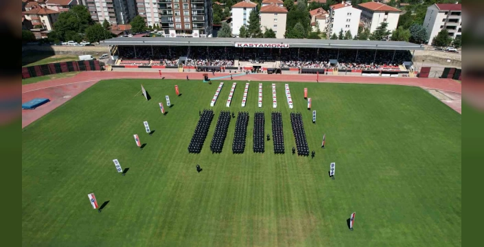 Kastamonu Polis Meslek Yüksekokulu'nda (PMYO) eğitimlerini tamamlayan 486 polis memuru, görkemli bir mezuniyet töreniyle görev yerlerine uğurlandı. 22. dönem mezuniyet töreni, ilk kez Gazi Stadyumu'nda gerçekleştirildi. Törende, saygı duruşu ve İstiklal Marşı'nın okunmasının ardından dönem birincisi Mehmet Ali Karadağ, yaş kütüğüne plaketini çaktı.