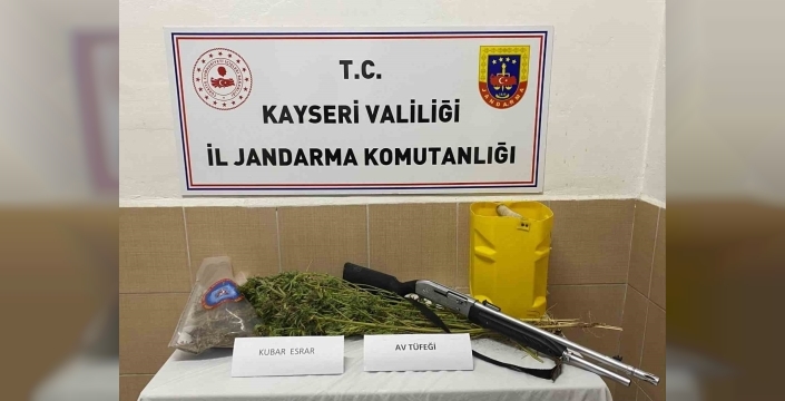 Kayseri'de jandarma ekiplerinin Özvatan ilçesinde düzenlediği operasyonda 1 kilo 690 gram kubar esrar ve ruhsatsız av tüfeği ele geçirildi, olayla ilgili 1 şahıs gözaltına alındı.
