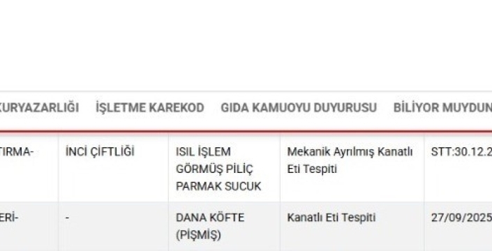 Kayseri'den listeye giren ürünler ise ısıl işlem görmüş piliç parmak sucuk ve dana köfte olarak belirlendi. Bu ürünlerde, mekanik ayrılmış kanatlı eti ve kanatlı eti tespiti yapılmış. Bakanlık, gıda güvenliğini sağlamak için denetimlerini artırmaya devam edecek.