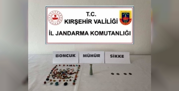 Kırşehir'de jandarmanın düzenlediği operasyonda, Pers-Sasani dönemine ait sikkeler, Roma-Bizans mührü ve antik boncuklar ele geçirildi.