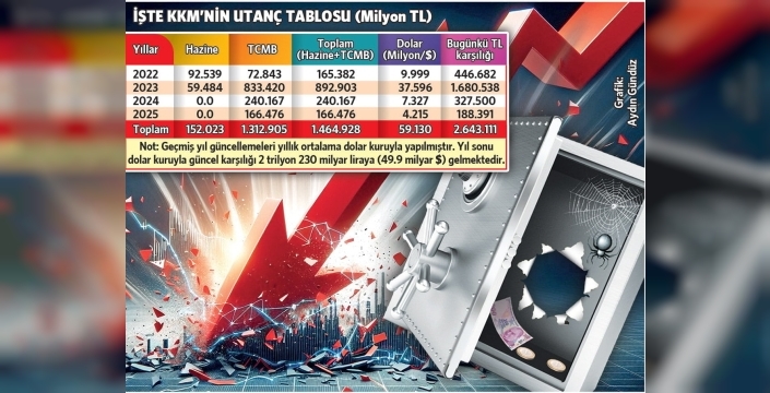 Maliye Bakanlığı’nın bütçe dengelerini alt üst eden KKM için Merkez Bankası kaynaklarından 1.3 trilyon lira, Hazine’den de 152 milyar lira aktarıldı. Merkez Bankası'nın üstlendiği yük, güncel kurlar ile 1 trilyon 736 milyar liraya, Hazine'nin yükü ise 362 milyar liraya ulaştı. KKM için yapılan ilk ödeme 2022'de gerçekleşti ve o yıl Hazine 92.5 milyar, Merkez Bankası ise 72.8 milyar lira ödedi. 2023'te ise toplam fatura 893 milyar lirayı buldu. Sırt çevrilen emekliye, işçiye ve fakirlere ‘para yok’ denirken, 2.6 trilyon lira zenginlere KKM adı altında aktarıldı. Bu para ile her biri 2.5 milyon lira maliyetle 1 milyon 57 bin konut inşa edilebilir veya 16 milyon emekliye 165 bin lira dağıtılabilirdi. Ayrıca, işsiz gençlere istihdam sağlamak için 2 bin 643 devasa fabrika kurulabilirdi.