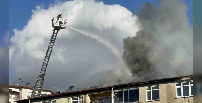 Kocaeli'de, 4 katlı bir binanın çatısında onarım çalışmaları sırasında yangın çıktı. Yangın, çatı kaplama malzemesi olan membranın tutuşması sonucu meydana geldi.