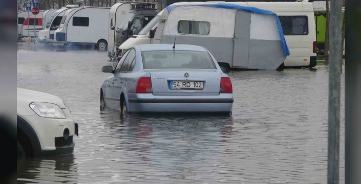 Kocaeli'nin İzmit ilçesinde etkili olan lodos ve şiddetli rüzgar, açık bir otopark alanını sular altında bıraktı. Deniz seviyesinin yükselmesiyle birlikte kıyı şeridinde meydana gelen dalgalanmalar, otoparktaki park halindeki araçları ve karavanları olumsuz etkiledi.