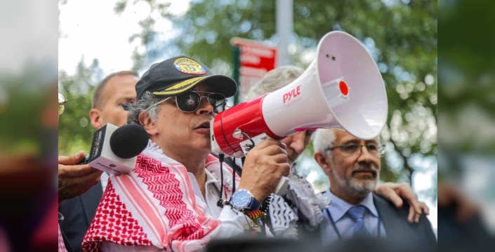 80. Birleşmiş Milletler Genel Kurulu'na katılmak üzere ABD'de bulunan Petro, New York sokaklarındaki Filistin destekçisi gösterilere katılarak İsrail'in Gazze'deki saldırılarını kınadı. Petro, konuşmasında ABD askerlerine seslenerek, "İnsanlığa karşı füzelerinizi doğrultmayın, ABD Başkanı Donald Trump’a boyun eğmeyin. İnsanlığa hizmet edin" ifadelerini kullandı. Ayrıca, Gazze'de yaşananları "kelimenin tam anlamıyla soykırım" olarak nitelendiren Petro, ABD Başkanı Donald Trump'ı ise "soykırımın suç ortağı" olarak tanımladı.