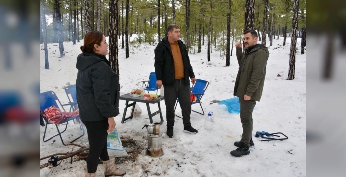 Köyceğiz Kaymakamı Mert Kumcu, Sandras Dağı'nda kar keyfi yapan vatandaşlara sürpriz ziyarette bulunarak onlarla vakit geçirdi ve yaklaşan kar festivali hazırlıklarını inceledi.