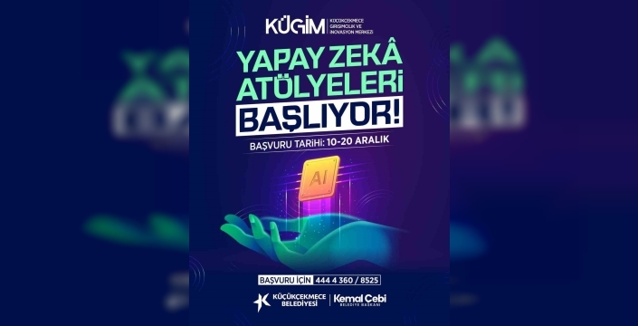 Küçükçekmece Belediyesi Girişimcilik ve İnovasyon Merkezi (KÜGİM) bünyesinde Yapay Zekâ Atölyeleri başlıyor. 20 Aralık'a kadar başvuruların devam ettiği atölyelere 10 yaş üzeri herkes katılabiliyor. Toplumun dijitalleşmesinde önemli bir rol oynayan yapay zeka teknolojilerine yönelik bu atölyeler, değişen dünyaya ayak uydurmak ve geleceğe ışık tutmak amacıyla düzenleniyor.