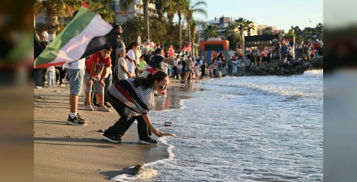 Etkinliğe katılanlar, ellerinde ‘Filistin yalnız değildir’, ‘Soykırım bitsin’ ve ‘Nefes almak yetmiyor yaşamak için’ yazılı pankart ve dövizlerle desteklerini gösterdiler. Balıkçı tekneleri ve yat sahipleri de gösteriye katılım sağladı. Meydanda kurulan ekrandan Sumud Filosu'na canlı bağlantı yapıldı. Etkinliğin sonunda çocuklar, Filistin bayraklı oyuncak teknelerini denize bıraktı.