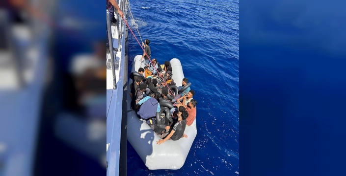 Aydın'ın Kuşadası ilçesi açıklarında, Yunanistan tarafından Türk karasularına geri itilen bir lastik botta mahsur kalan 7'si çocuk 22 düzensiz göçmen, Sahil Güvenlik ekipleri tarafından kurtarıldı.